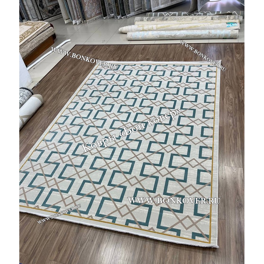 Красивый Геометрический Ковер Для Гостиной Дизайн 30613 наполняет интерьер комнаты теплом и уютом, гармонично сочетает в себе изящество и красоту. Он соткан из износостойких материалов, комфортный и долговечный.