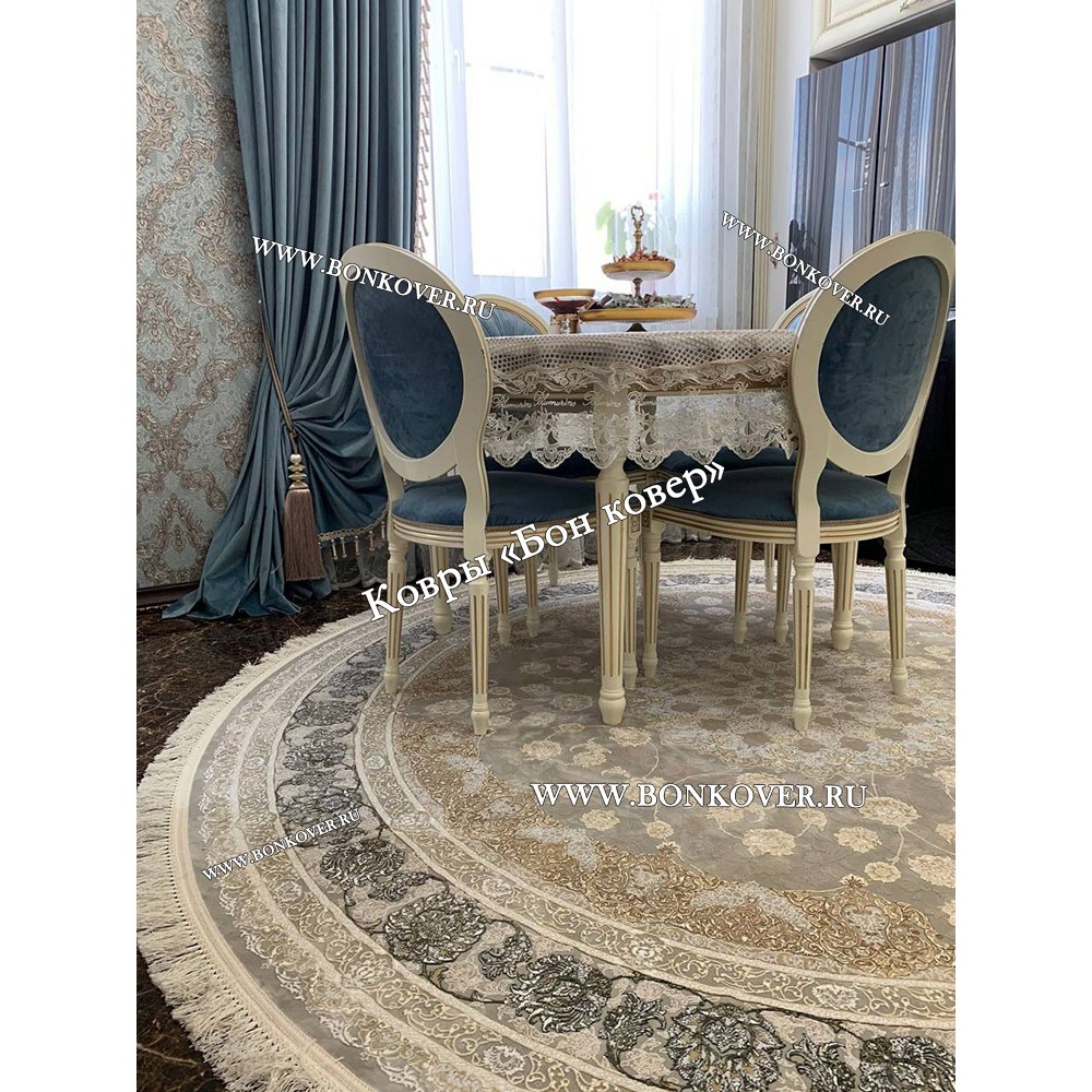 Иранский Круглый Ковер Для Гостиной Арт 30239 станет идеальным дополнением интерьера, оформленного в современном или классическом стиле. Мягкое, но прочное, ковровое изделие обеспечивает тепло- и шумоизоляцию, отличается длительным сроком эксплуатации, пожаробезопасностью, экологичностью и высокой износостойкостью, является отличной гарантией от повышенной влажности в помещении и утеплителем для холодного пола. Благодаря качеству материалов, ковер не деформируется, сохраняет форму под тяжестью предметов мебели. За его поверхностью легко ухаживать.