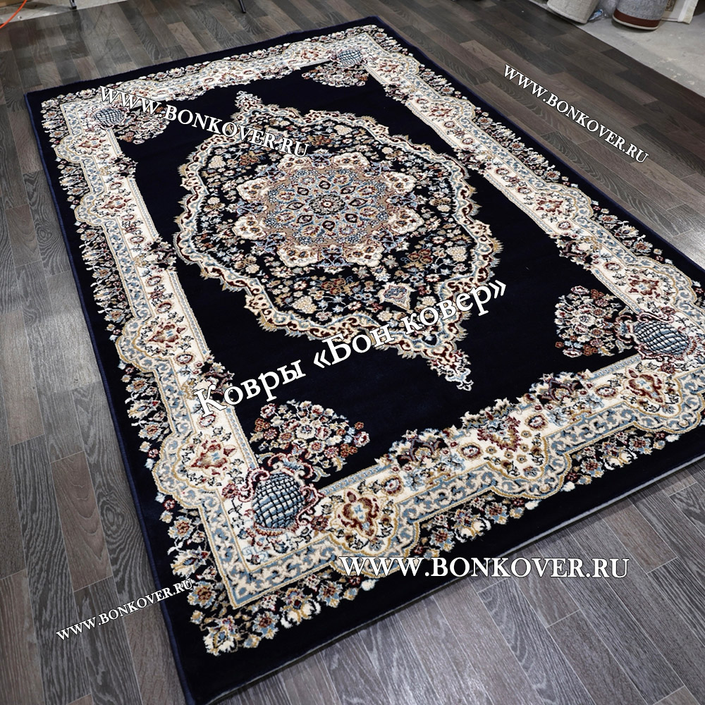 Долго искали смотрели на разных сайтах , в итоге ваш ковер приглянулся больше всего . Доставили в рулоне на следующий день , оплатили при получении . Идеальный вариант , цвет темно синий с переливом - рисунок очень выйгрышно смотрится !